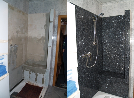 Je nach Einsatzort und persönlichem Geschmack stehen unterschiedliche Materialen und Oberflächen in bewährter Dünnsteintechnik zur Auswahl. Die Arbeiten vor Ort nehmen dabei nur wenige Stunden in Anspruch, da die erforderlichen Teile in der Produktion millimetergenau vorgearbeitet werden.